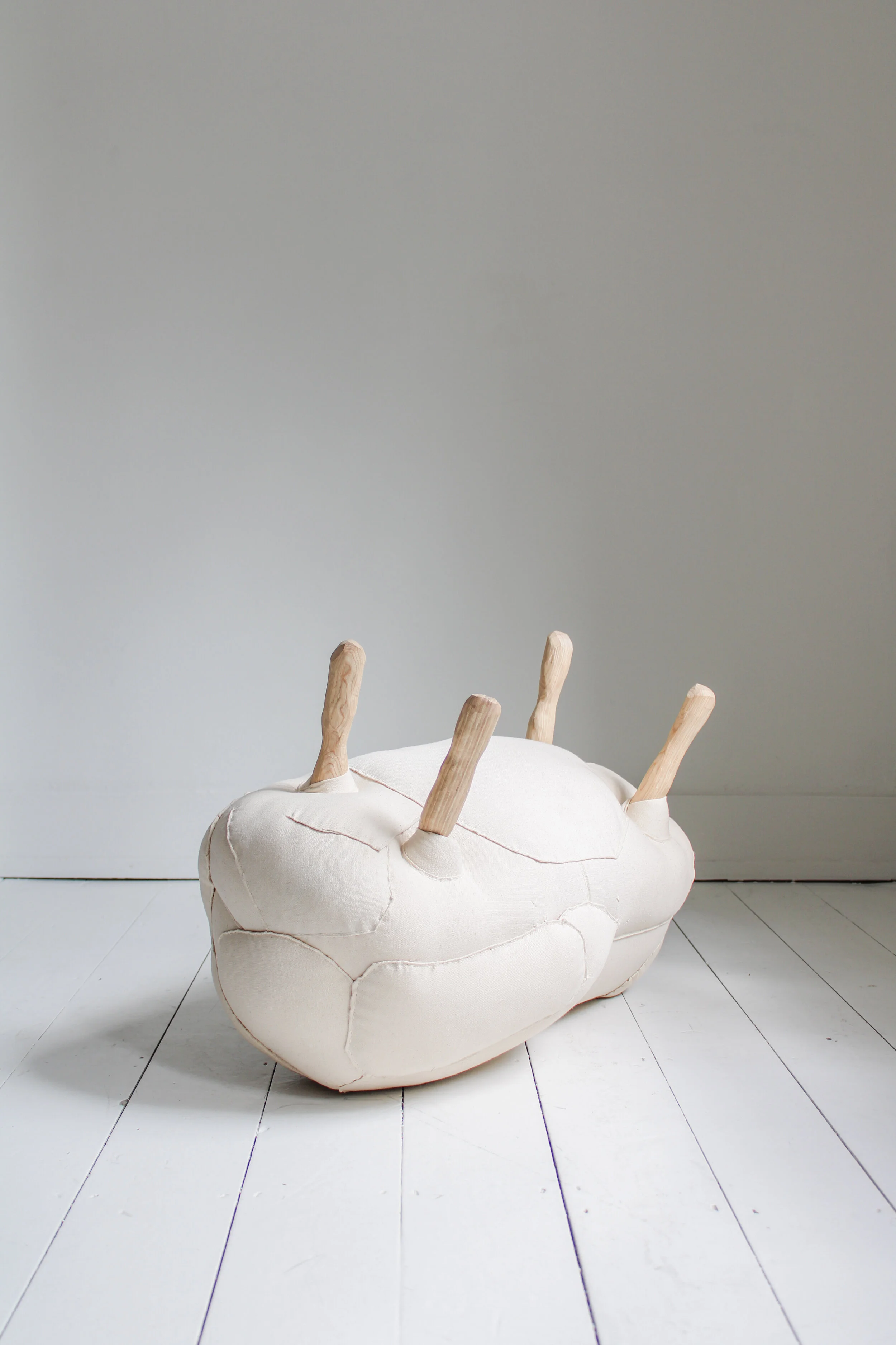hand carved ash dowels, plywood, recycled toy stuffing, cream cotton canvas
